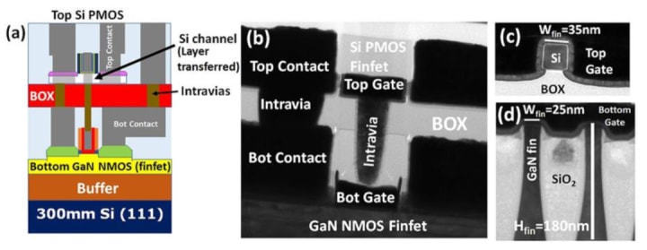 通過在300毫米的硅晶圓上集成氮化鎵基(GaN-based)功率器件與硅基CMOS,實現(xiàn)了更高效的電源技術(shù)。這為CPU提供低損耗、高速電能傳輸創(chuàng)造了條件,同時也減少了主板組件和空間。氮化鎵半導體器件主要可分為GaN-on-Si(硅基氮化鎵)、GaN-on-SiC(碳化硅基氮化鎵),GaN-on-sapphire(藍寶石基氮化鎵)等幾種晶圓。由于成本和技術(shù)等因素,硅基氮化鎵成為了目前半導體市場主流。英特爾在300毫米的硅晶圓上首次集成氮化鎵基(GaN-based)功率器件,此研究驗證了300毫米工藝兼容可行性,更適配高電壓應(yīng)用,增加了功能,提升了大規(guī)模制造可能性。