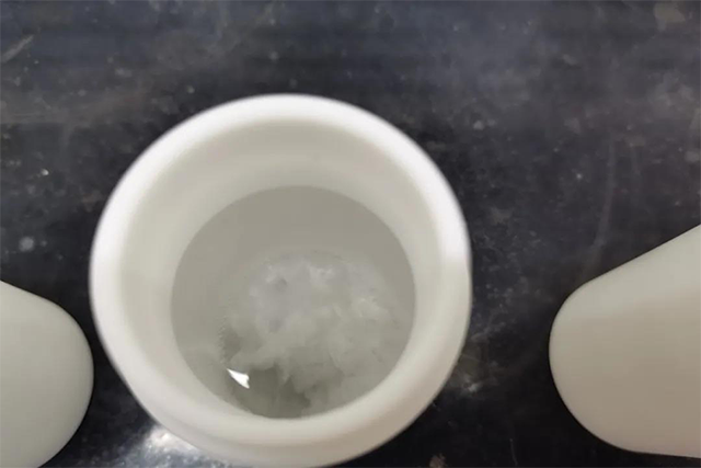 在恒溫220℃馬弗爐中消解1小時;取出冷卻后擰開蓋子,在實驗電熱板中蒸至近干,約2mL,用5mL硝酸和少量水分清洗消解罐,出現(xiàn)白色結(jié)晶物,再加入5mL硝酸于220℃電熱板消解15min,蒸至體積小于20mL;