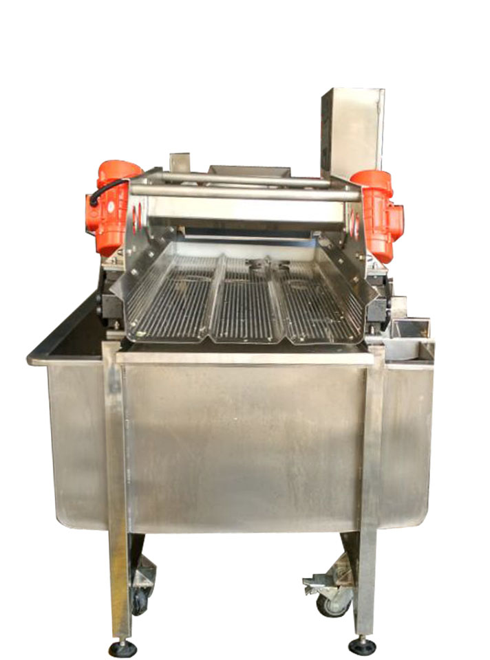新型渦流振動(dòng)清洗機(jī)利用清洗凈水形成渦流,使物料處于渦流的凈水中清洗。物料被清洗時(shí),是和清洗水槽中的凈水一起作螺旋運(yùn)動(dòng),物料清洗后受水動(dòng)力作用被推進(jìn)振動(dòng)輸送機(jī)構(gòu),而送出清洗機(jī)。